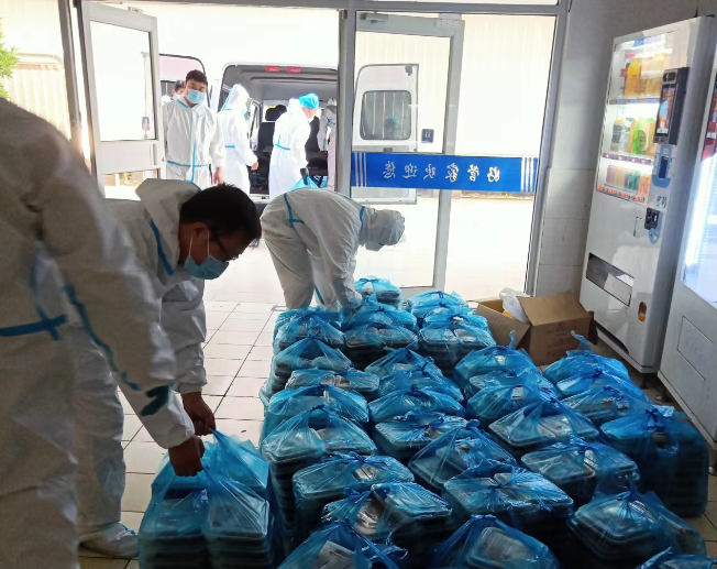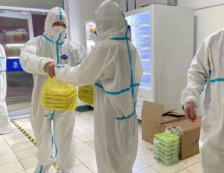 清潔完畢,又到了飯點時刻,熱騰騰的午飯在志愿者們的手中傳遞,也是在給每一位靜默在宿舍里的同事們,帶去溫暖和希望。讓大家都知道,困難時刻,我們攜手同行,社會,政府,企業,都在竭盡全力,保障民生物資,守護大家的安全。此刻,我們要做的就是,守住這份“靜默”!