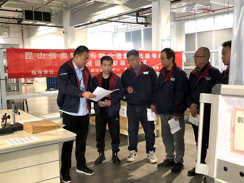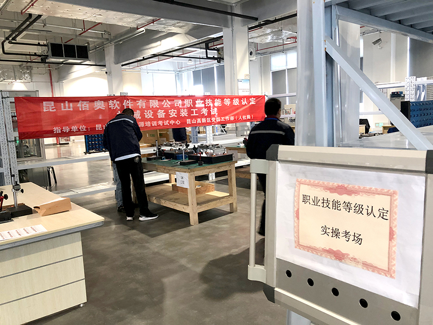 近日,昆山佰奧智能裝備股份有限公司在昆山高新區黨群工作部(昆山市人社局)及昆山市人力資源培訓考試中心指導下,在公司內開展職業技能等級認定機械設備安裝工考試。