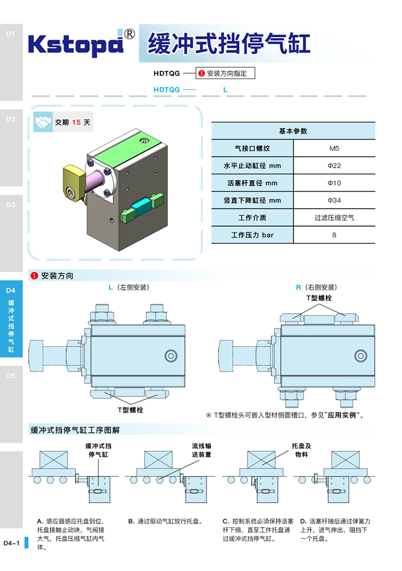 優點: 可有效解決DTQG擋停氣缸在阻止載具通過時因載具速度過快引起的沖擊問題。可與BSL2.5、BSL3.0倍速鏈流線、PPDS平皮帶輸送流線、TPDS同步帶輸送流線等流線兼容。